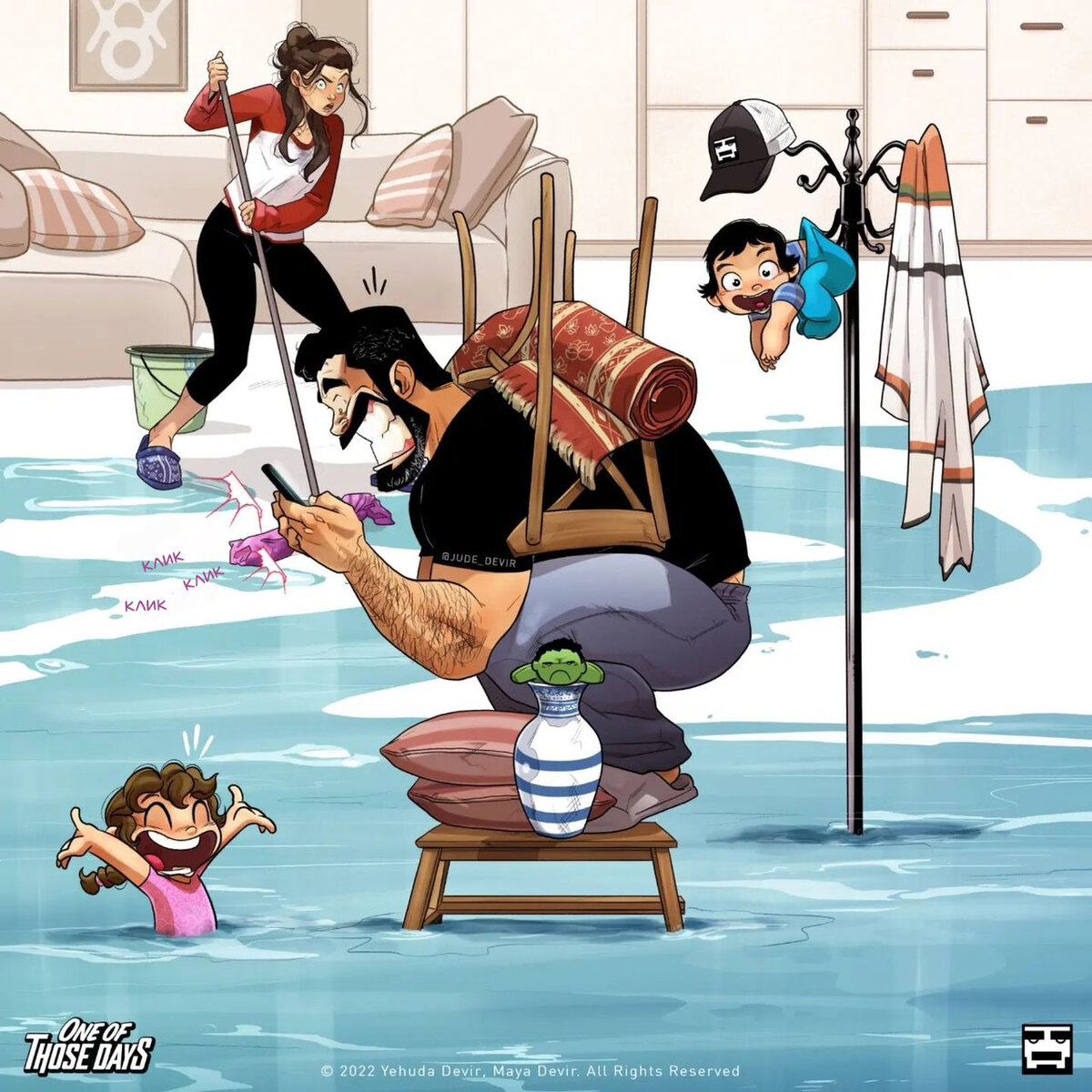 Первый комикс от Иегуды Девир - повторение уже старого, но именно с той идеей, чтобы показать, как много всего изменилось с появлением малышей. До 2018 года и уже 2022. Видно, что им стала еще веселее, чем было раньше. Ариель и Итан растут яркими и веселыми детьми, что не удивительно, с такими то родителями. Майя и Иегуда в прошлом году начали основательно готовиться к запуску нового проекта xoxonft.io. Это проект по графическому искусству в интернете, где главной темой Майя и Иегуда выбрали - любовь. Конечно запускать новый проект, когда дети еще маленькие оказалось очень сложно. Временами Иегуда чувствовал себя раздавленным. Однако, к счастью, именно дети придавали ему силы вставать и реализовывать свои планы дальше! Когда-то работы Майи и Иегуда покорили весь интернет своей честностью, веселое непосредственностью, красивой графикой. Прошло уже много лет, но молодая пара решила не менять свой фирменный стиль, оставаться верными ему и продолжать в том же духе. Здорово, ведь это ст