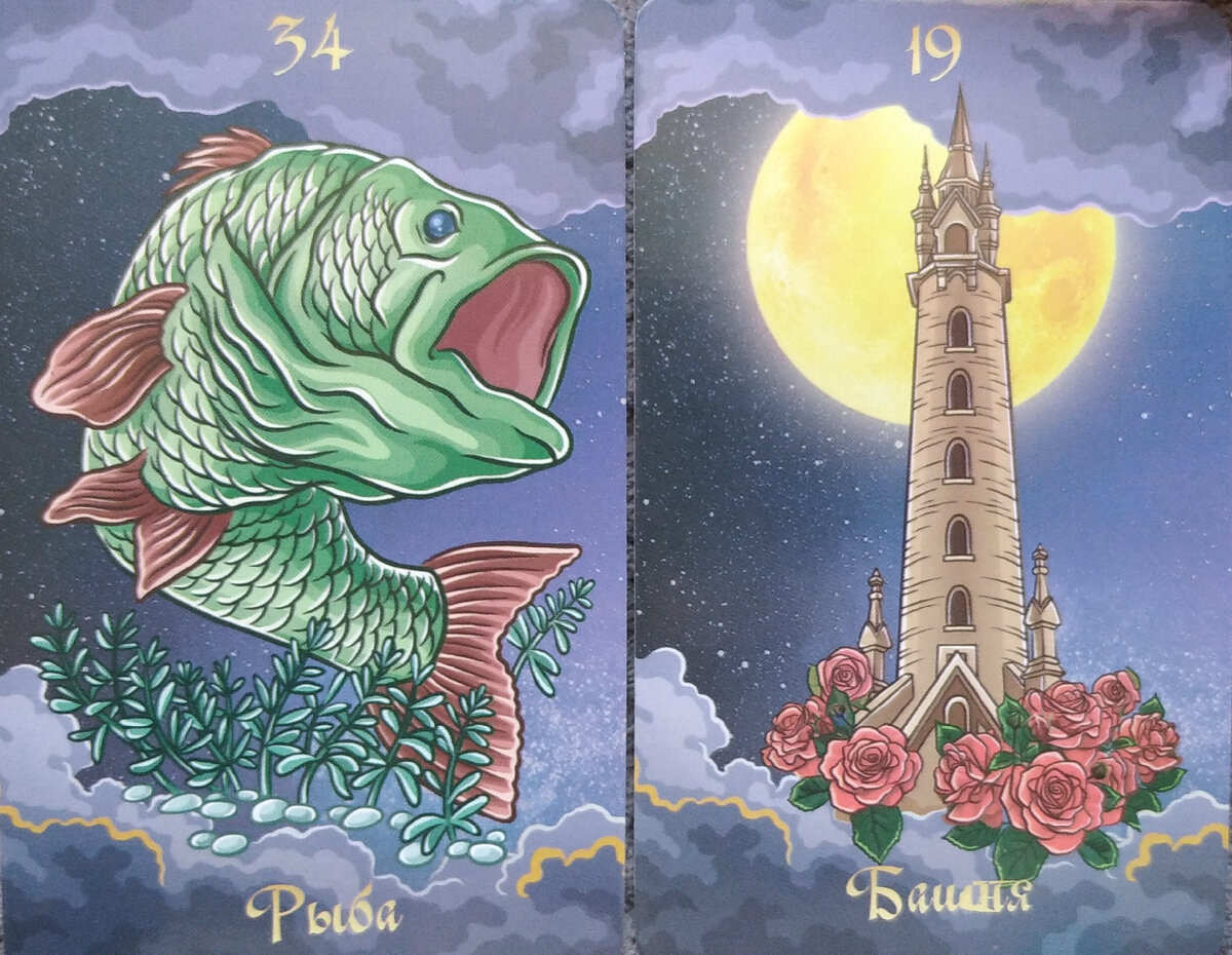 Рыба🐟 Поездка, имущество, приобретение. Карта символизирует жизнь, богатство, духовное обогащение. Здоровье- вялотекущие болезни, заболевания сосудов, простуда. Человек деловой, расчётливый, глубокий. Башня🏰 Маяк, стабильность, стремление. Карта символизирует результат труда, устойчивость. Здоровье-стабильность в любом смысле, долголетие. Человек одинокий, вдумчивый. Прошлое. Материальный мир- ЖАДНОСТЬ. Настоящие. Карта выпала в перевёрнутом виде означает, что новая жизнь не может начаться из за страха перемен. В любовном раскладе означает изменение ваших отношений в противоположную сторону. Будущее. Карта выпала в перевёрнутом виде указывает на недостаточность информации, нехватку знаний, означает неизвестность или обман. В любовном раскладе карта говорит о том, что человек хочет больше о вас узнать, вы ему интересны, но он не испытывает сильных чувств. Не следует бояться выпавших пророчеств — даже простое гадание на Таро указывает на вероятность будущих событий, не навязы