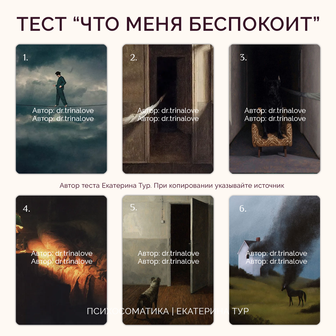 Сегодня я предлагаю Вам пройти новый тест на определение скрытого уровня тревоги, беспокойства и волнения. Тест выполнен в моей авторской методике и является диагностическим инструментом для работы в психосоматике.