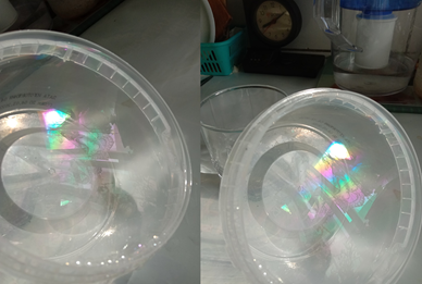 1. Общая цветовая гамма радужной картинки зависит от спектрального состава источника, независимо от толщины пленки. От искусственного света (энергосберегающая лампочка) в радуге наблюдается больше фиолетовых оттенков, чем от солнечного света.