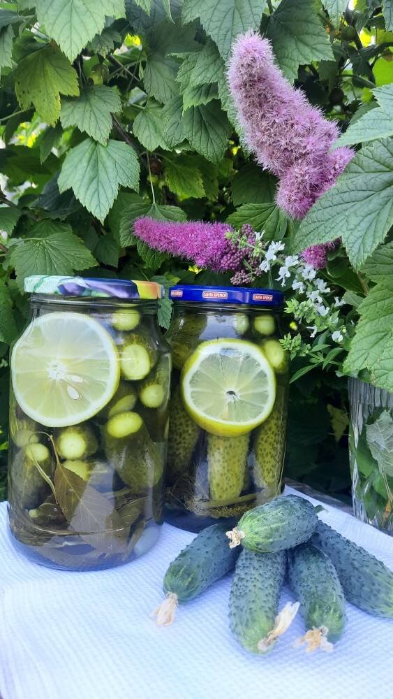 Получаются вкусненькие, хрустящие с особой кислинкой. #заготовки Ингредиенты: На 1 литровую банку :, Огурцы сколько войдёт, Зелень : , укропа, , лист хрена, , вишни, смородины, лимона, чеснока, перец душистый горошком, Маринад :, воды, соли, сахара, лимонной кислоты Способ приготовления: Приготовить банки. Огурцы заливаю холодной водой на 3 часа. У огурцов обрезать кончики. Уложить в банки зелень, огурцы, лимон, чеснок, перец. Заливаем кипятком и накрываем на 20 минут. Сливаем в кастрюлю, насыпаем соль, сахар, лимонную кислоту, доводим до кипения и заливаем повторно огурцы. Закатать и убрать под плед до остывания.