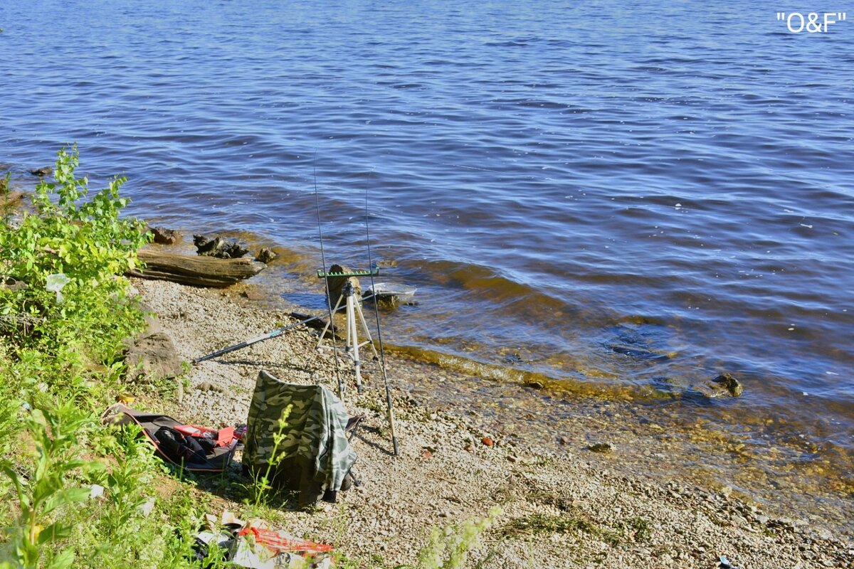 Утром дул ветер в "харю" и были большие волны...рагатина для садка тут втыкаться отказывалась так,словно под слоем гравия"монолитная плита"~ поэтому решил складывать рыбу сразу в мешок из под картошки.