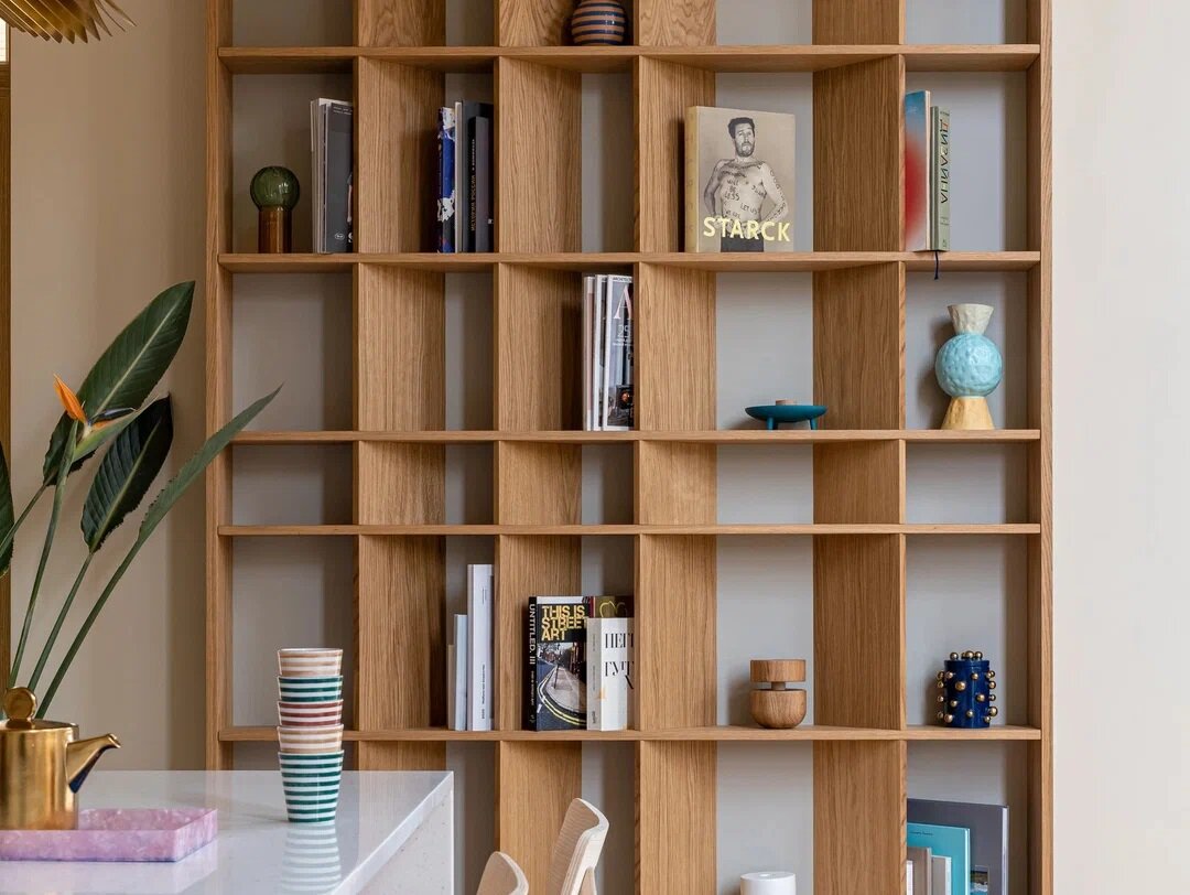 Особенность стеллажа в том, что он по-разному выглядит в пространстве с разных ракурсов, особенно когда он наполнен.