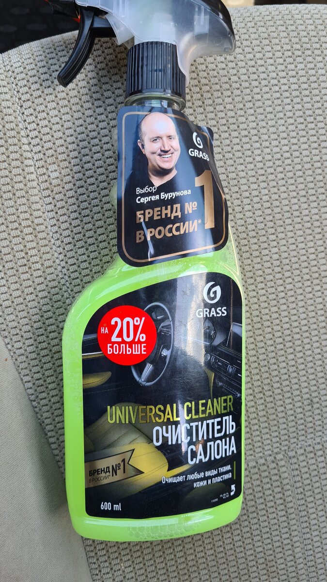 Всем привет! Многие из Вас слышали, а возможно и пользовались автокосметикой фирмы GRASS. В интернете очень много отзывов о продукции данной марки, большинство положительные, как говориться доверяй, но проверяй. Поехали! Сегодня у нас на тесте очиститель салона. Вот такой Производитель утверждает, что данный автохимия очищает любые виды тканей, кожи и пластика... И первое испытание - это старое пятно от шоколада на тканевой обивки сиденья: Наносим состав при помощи распрыскивателя на сидение, образуется пена: И тряпочной салфеткой начинаем протирать и убирать пену с обработанной поверхности: У меня это заняло примерно 1 минуту, посмотрите сколько грязи осталось на салфетки: Поверхность высохла и вот результат: Очиститель без труда справился с пятном от шоколада А справиться ли он с битумными пятнами на пластиковой поверхности. Вот такими: Пробуем. Даже после трех обработок, задача оказалась непосильной, пятна, как были так и остались: Какие можно сделать выводы? Очиститель показал сво