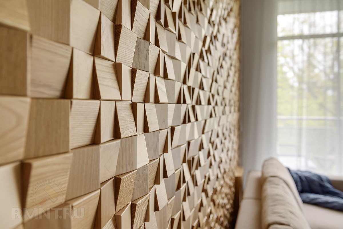 Мозаику можно изготавливать отнюдь не только из керамики. Делают её и из натуральной древесины. Получается весьма интересный, декоративный отделочный материал, который может использоваться с различными целями. Сайт RMNT приведёт вам примеры применения деревянной мозаики для отделки и декора. У мозаики из древесины поистине безграничные возможности в части декора. Разные цвета, текстуры, формы и размеры позволяют экспериментировать с оформлением интерьеров. Делают мозаику из сосны, ясеня, ореха, клёна, дуба, бамбука, бука, даже из скорлупы кокосовых орехов. Выглядит такая отделка в модном сегодня эко-стиле привлекательней, чем панно и покрытия, выложенные, например, из битой плитки. Деревянные тессеры, детали, которые могут напоминать черепицу или паркет, защищают восковыми, масляными пропитками и лаками, чтобы отделка служила долго. А мозаика из тика, например, вообще влажности не боится. Миниатюрными элементами можно облицовывать углы и колонны, скругления и повороты, арки и ниши. Раз