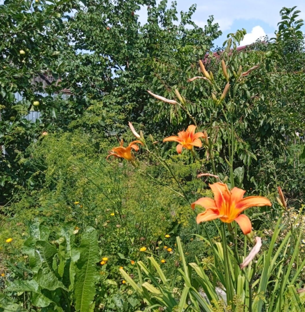 Когда мы только переехали в этот дом, двадцать лет назад, первым делом вырубили все старые деревья. Это было ранней весной, так что мы даже не знали, что вырубаем. Осталось только две яблони. И появился огород, на котором, путем проб и ошибок, стали выращивать зелень, свеклу и морковь, огурцы и помидоры. В разные годы были разные урожаи, но на закрутки на зиму всегда хватало, и все лето со своей зеленью. На огороде растили всего понемногу, один год даже цветную капусту удалось вырастить больше, чем смогли сразу съесть. Закрывала на зиму пару банок. Закрывала помидорным рассолом, получилось съедобно, но все таки цветную капусту лучше есть жареной. Один раз посадила календулу, собирала цветы и сушила, как лекарство от простуд. Теперь календула растет по всему огороду. Десять лет назад посадили сад, вишни, сливу, яблони, грушу, абрикос. Сначала огороду деревья не мешали и урожаи были нормальные. Но деревья растут и урожай с каждым годом меньше, огороду не хватает солнечного света. Да и