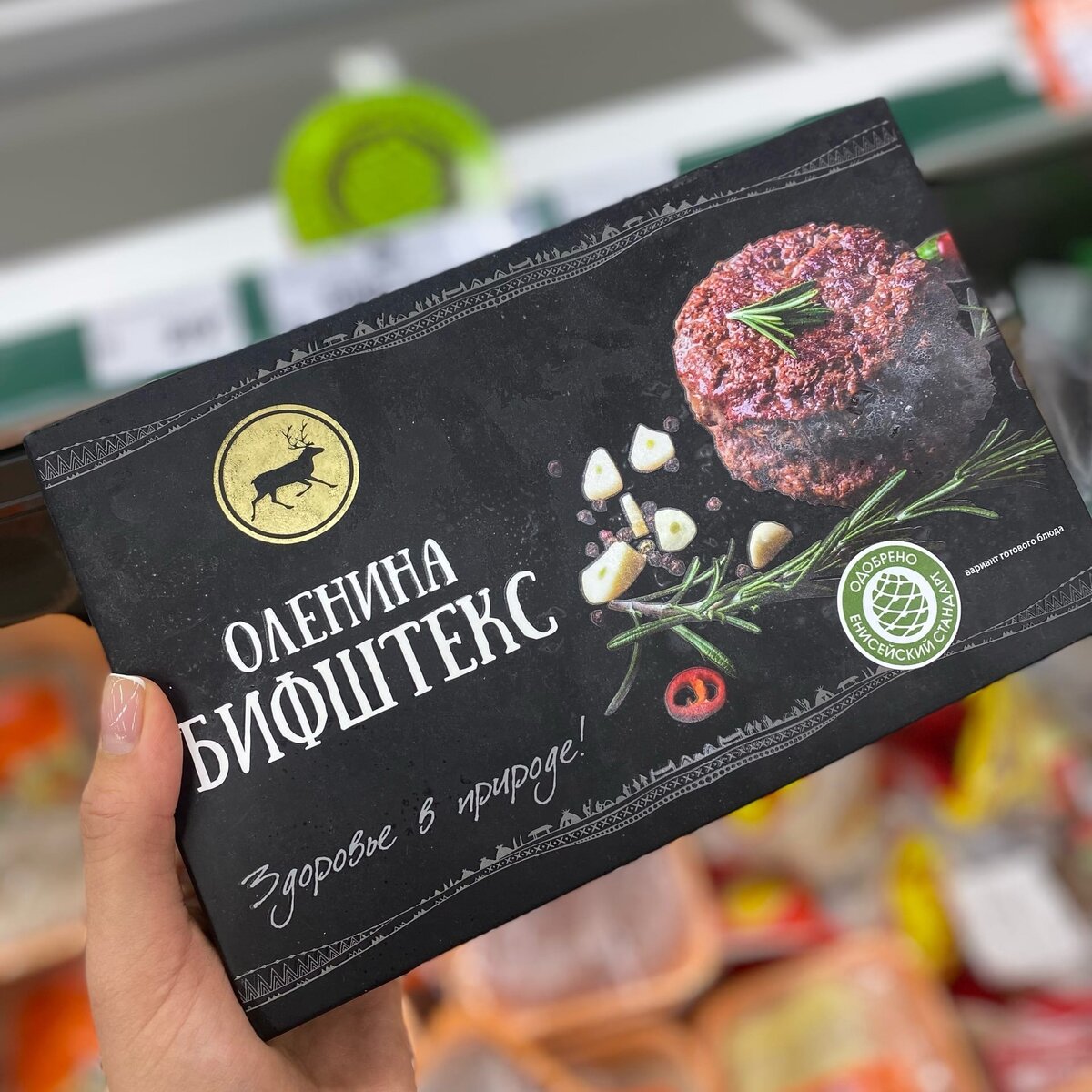 Начинаем с разделывания мяса: его необходимо избавить от пленочки и нарезать крупными кусками. Возник вопрос о том, где найти оленину, если вы не охотник или северянин? Мы однозначно рекомендуем приобрести мясо у местного производителя «Северный дар». Его продукция проверена и имеет знак качества «Одобрено. Енисейский стандарт». А ещё она местная, так как еда — дело местное!