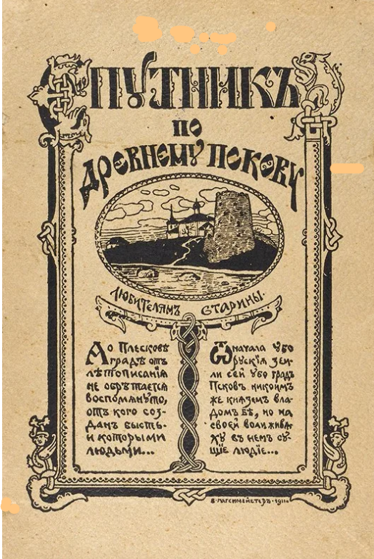 "Это не мертвые руины: они живут и как бы хранят в себе частицу души предков наших, которая таинственно передается живущим поколениям". Так говорил замечательный человек – исследователь псковской старины Николай Фомич Окулич-Казарин, автор удивительной книги – первого путеводителя "Спутник по древнему Пскову" с подзаголовком "Любителям родной старины". В 1911 году 330 страниц были отпечатаны в типографии Псковского Губернского Земства.