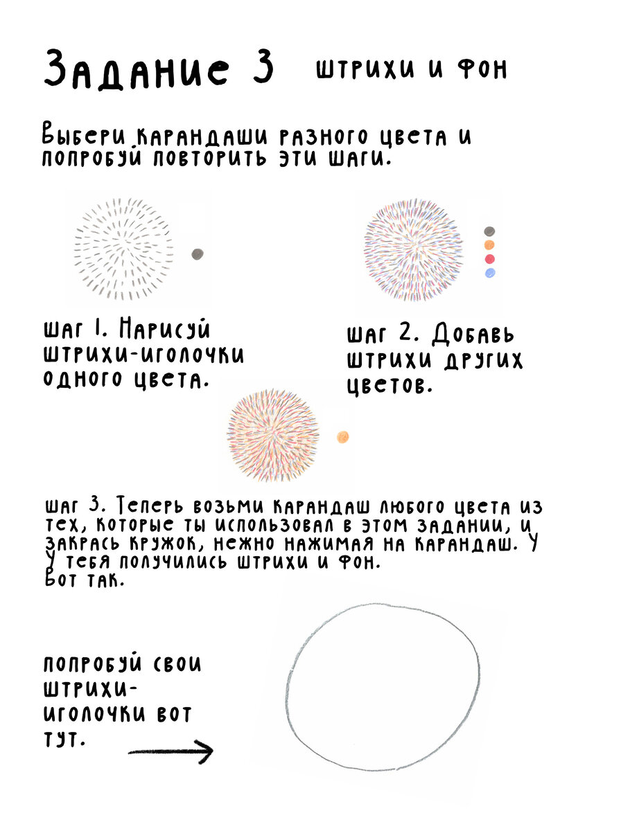 В прошлом задании я показала, как могут выглядеть штрихи разными цветами. В этом задании все остается также, но мы добавляем фон. То есть, не оставляем белую бумагу просвечивать через штрихи. Чтобы фон смотрелся гармонично, лучше использовать один из цветов, которым вы делали штрихи. Фон мы накладываем нежно, не очень сильно нажимая на карандаш. Вот несколько работ, где я использовала этот прием. Если вы хотите поделиться результатами, выкладывайте в комментариях. Это может быть ежик, либо другой рисунок, в котором вам захочется использовать эту технику. Вместе с рисунком похвалите себя! Помните, мы говорили о том, как это важно и нужно! #урокирисования #цветныекарандаши