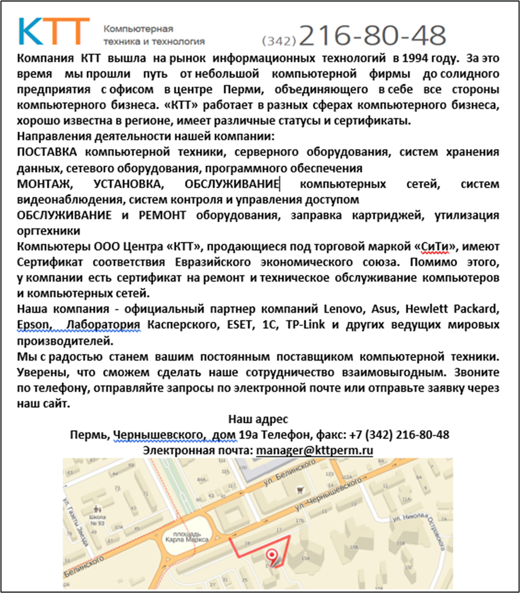 Компьютерная Техника и Технология для предприятий Перми и Пермского края. Реклама
