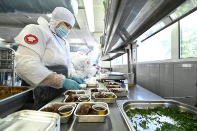 Фабрика бортового питания аэропорта Домодедово – крупнейшее в Восточной Европе и СНГ предприятие по производству готовой продукции для пассажиров всех классов обслуживания. Производственная мощность компании составляет порядка 80 тысяч рационов в сутки. На фабрике трудится около 700 человек. Ознакомились с деятельностью предприятия вместе с председателем Мособлдумы Игорем Юрьевичем Брынцаловым и сенатором РФ Александром Владимировичем Двойных. С прошлого года фабрика реализует продукцию в супермаркетах, магазинах правильного питания, на онлайн-платформах под брендами «Фабрика 1965» и «Шеф Перекрёсток». Сейчас компания продолжает искать новые возможности для сбыта продукции. На встречу пригласили руководителей домодедовских компаний «Комус» и «Ашан», чтобы обсудить возможность взаимодействия. В этом году «ВсеИнструменты.ру» начали закупать продукцию фабрики и очень довольны, рассказали об этом опыте. Для нас очень важно, чтобы домодедовские предприятия взаимодействовали друг с другом.