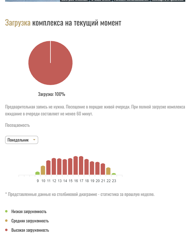 Сегодня - понедельник, 25 июля, на улице 31 градус. Я в надежде, что все на работе и успели за лето накупаться, поехала в Баден-баден к 11 утра. На сайте есть удобная штука - график загрузки. Можно посмотреть как загружен комплекс прямо сейчас, и по дням посмотреть примерную загруженность. В 10 утра загрузка была 63%, я довольная вызываю такси, приезжаю на место, а там вот такая картина. В итоге, пришлось стоять 1 час 20 минут. Для посещения этого места был повод - ДР моей мамы. Наш состав: ребенок 8 лет, 2 пенсионера и я( обычный взрослый человек). В ДР действует скидка 10% для всех кто пришел с именинником и ребенок проходит бесплатно если оплатить 2 взрослых билета. Нам сделали хорошую скидку и вход 4-х человек обошелся нам - 3564 руб. Внутри тоже приличное количество людей, но это никак не мешает купаться. Даже некоторые сауны были пустые и можно посидеть в одиночку ( может потому что на улице жара и люди не хотели париться). А саун на территории предостаточно - и кофейная, и