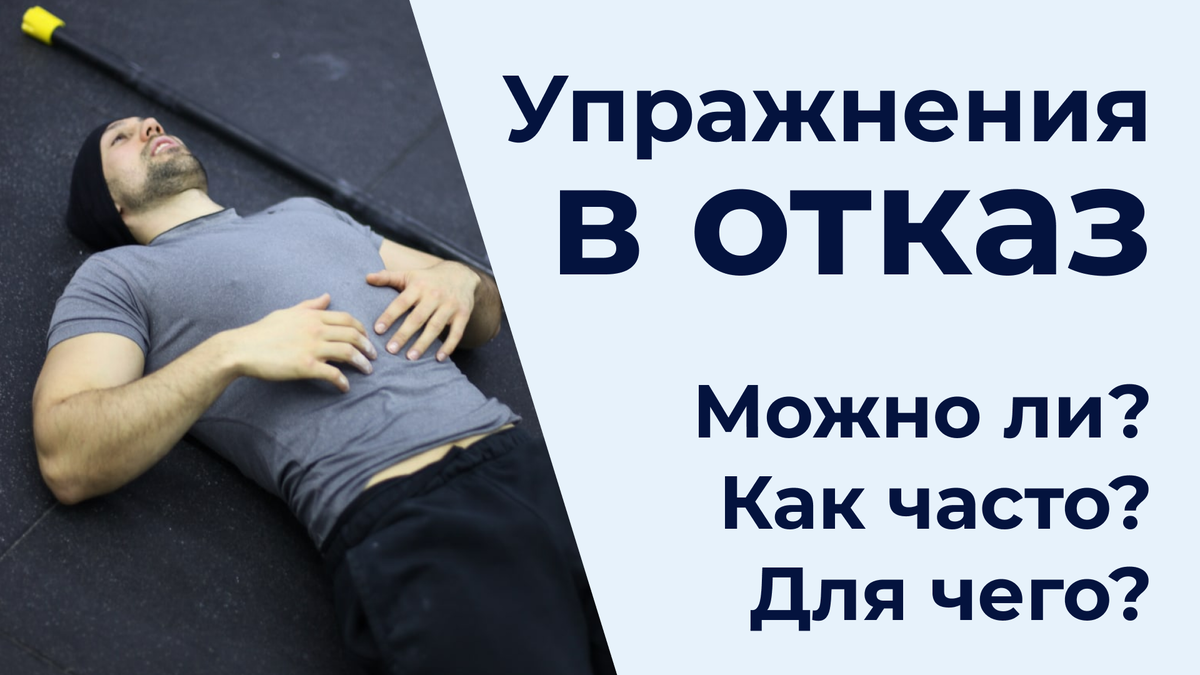 Что значит работать в отказ? Определение: делать упражнения в отказ - значит, что мы делаем упражнение до тех пор, пока мышца физически может выполнить его. Давайте на примере. Допустим, с правильной техникой я могу отжаться от пола 50 раз. Понятно, что первые 35-40 повторений я сделаю без особого труда, но дальше мышцы устанут и придется прикладывать гораздо больше усилий. Через несколько повторений я уже чисто физически (насколько бы сильно ни старался) не могу выполнить еще хотя бы одно повторение и падаю на пол без сил. Это и есть отказ. Мышца отказывается работать дальше. Сегодня обсудим, нужно ли делать упражнения в отказ, как часто, и зачем. Типы тренировок Существует два вида тренировок: тонизирующие и развивающие. В тонизирующих тренировках мы можем выполнять упражнение не не до отказа, а останавливаясь за 3-4 повторения до отказа, (то есть если я максимум могу сделать 12 приседаний со штангой, то я сделаю 8-9 повторений и остановлюсь на этом). Тонизирующие тренировки Основн