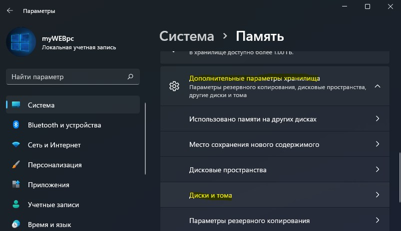 Разберем, как изменить размер раздела в Windows 11 для уменьшения пространства, либо увеличения объема раздела на диске из нераспределённого пространства. Воспользуемся такими инструментами как Параметры системы, Диспетчер дисков и Командной строкой, чтобы изменить раздел без форматирования и потери данных, в том числе и системного раздела диска C. Важно знать: Чтобы увеличить размер раздела на диске, нужно, чтобы было нераспределённого пространство, которое можно взять из другого раздела методом его уменьшения. Изменение раздела через Параметры Воспользуемся параметрами системы Windows 11 для изменения размера разделов на диске. 1. Откройте Параметры > Система > Память > Дополнительные параметры хранилища > Диски и Тома 2. Выберите нужный локальный диск на котором нужно изменить размер, к примеру V, и нажмите по нему мышкой, после чего Свойства. 3. Далее нажмите на кнопку Изменить размер. 4. Задайте из графы возможные МБ для максимального, чтобы увеличить локальный диск и минимальный,