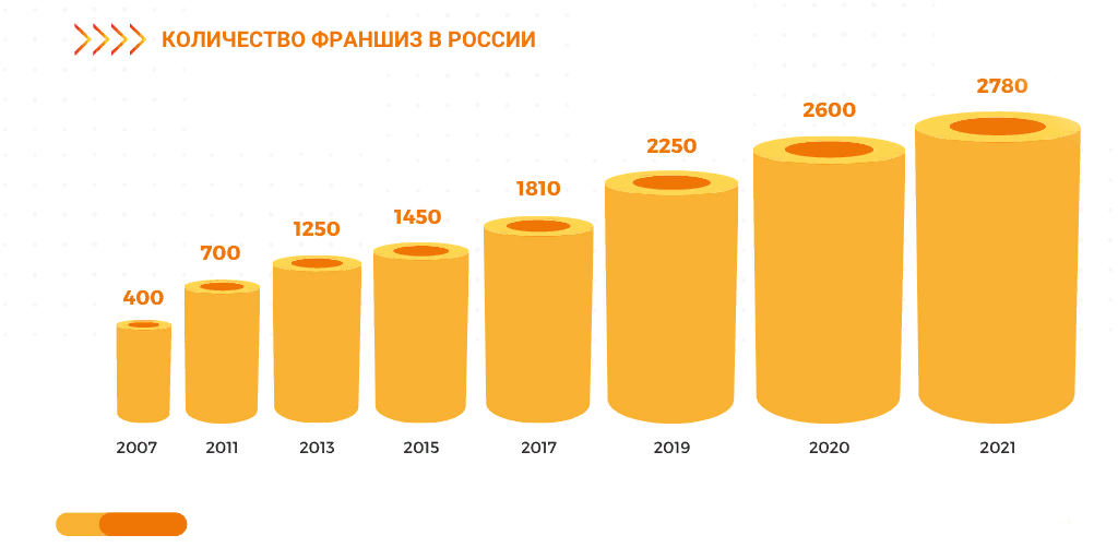 Последние семь лет франчайзинг в нашей стране активно развивается — число предприятий, по данным Российской ассоциации франчайзинга (РАФ), увеличивается не менее чем на 15% в год. Сегодня в России около 1450 брендов франшиз и более 50 000 франчайзи.