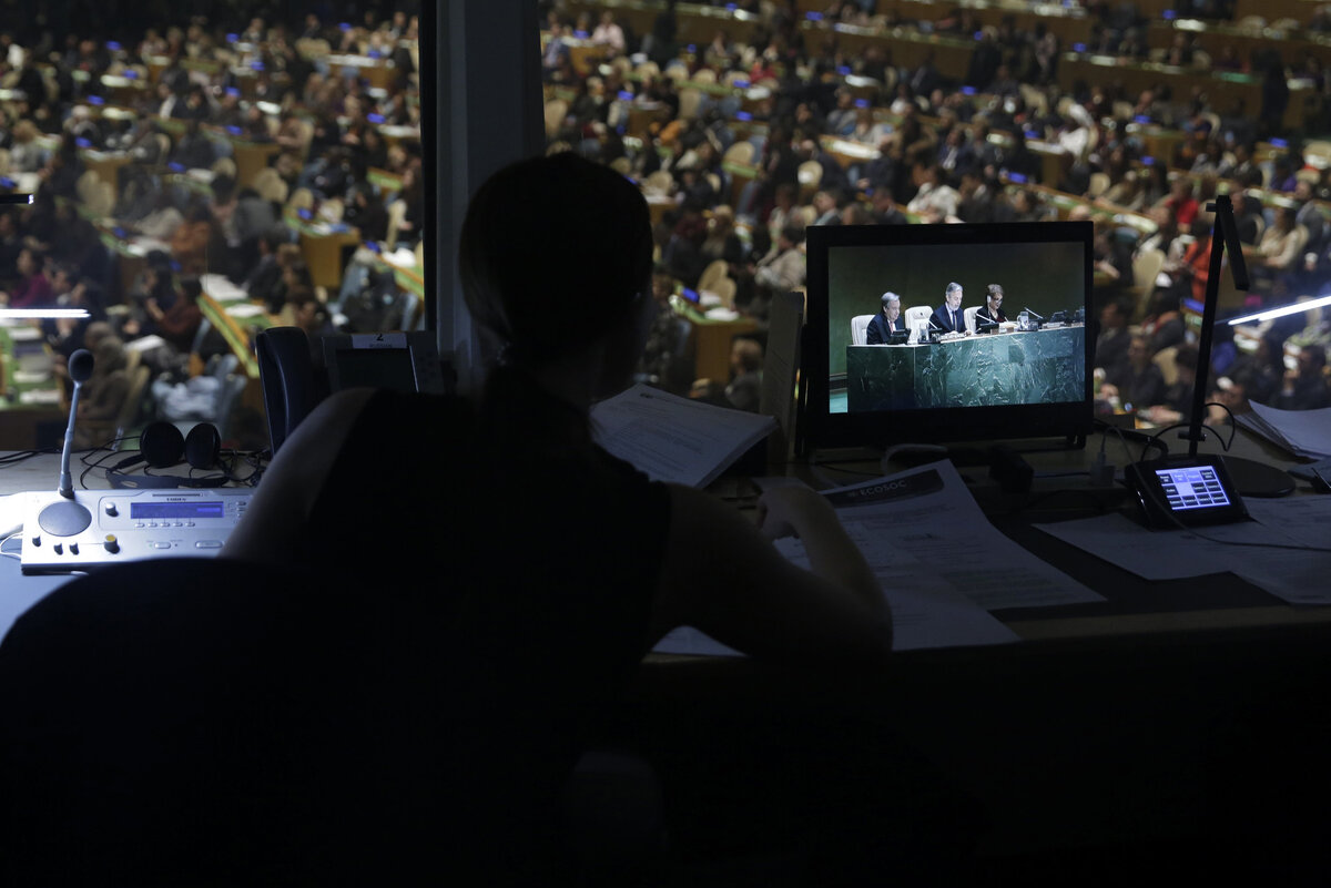 На заседаниях ООН синхронисты работают по трое. В России принято работать в паре. Важно, чтобы оба синхрониста были знакомы с тематикой мероприятия и владели терминологией.