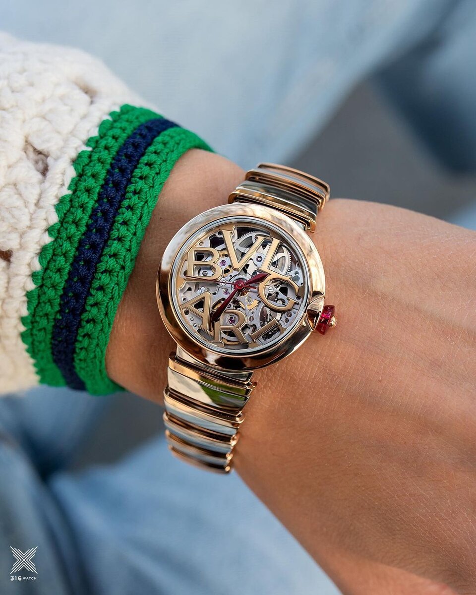 Фактурные буквы логотипа компании, выполняющие роль часовых меток, стали узнаваемой особенностью данной модели, восхищающей уровнем отделки каждой детали. Яркой пикантности добавляют контрастные стрелки алого оттенка, выполненные в тон заводной головки, украшенной ярким самоцветом. Биколорный корпус диаметром 33 мм и сложносоставной браслет сочетают в своей отделке сталь и розовое золото, что придаёт изделию поистине роскошный облик. Купить часы: https://316.watch/catalog/chasy/bvlgari/bvlgari-lvcea-102878/?utm_source=dzen