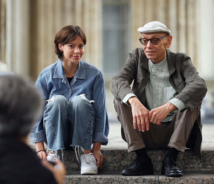 Съемки проходили на фоне колоннады Казанского собора. По сюжету сцены, девушки вместе снимают видео для социальных сетей, когда мимо пробегают убегающие от злодея главные герои фильма Дана и Лёва.