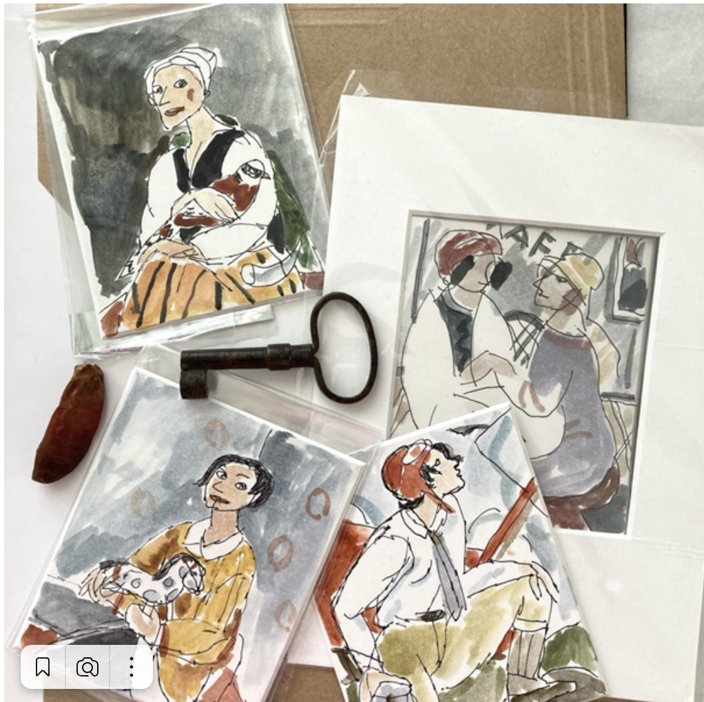 Можно сказать, что в моем случае эти маленькие эскизы главная часть работы над темой. Там уже преимущественно есть все, что я хотела бы сказать. Этот шаг тесно связан с идеей. Собственно, это визуальное воплощение идеи. Удивительно, но они получаются почти сразу такими, какими будут на холсте. Иногда требуется сделать практическую работу над деталями на отдельных листах, когда надо бы прорисовать что-то, чего еще нет в руках в полной мере, чтобы потом, уже в работе над картиной, детали не выглядели "пририсованными", а стилистически органично входили в образ.