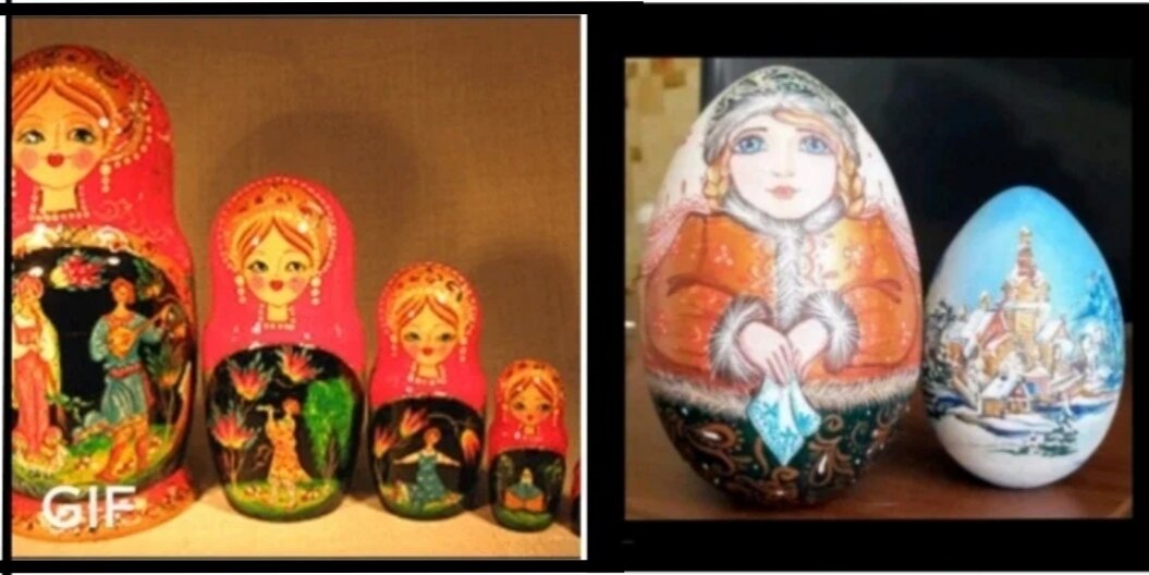 Цикличные, лоноплодные свойства вселенской матрицы также проявлены в художественно оформленных поделках русских мастеров - яйцах-крашенках и матрёшках.