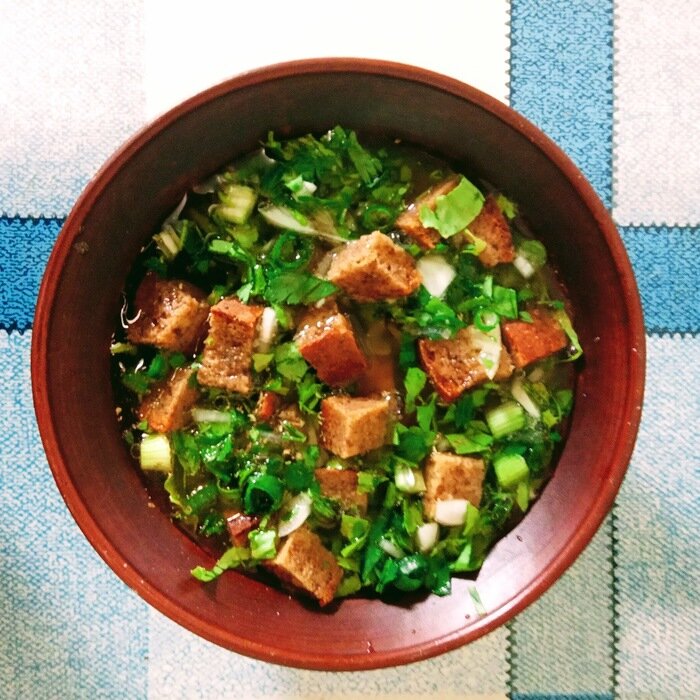Лето. Жара. Пора делать окрошку. Надо купить целый список ингредиентов. Выходить не дёшево. Задумаемся! А полезна ли окрошка в жару? Когда организм и так находиться в стрессе. Именно поэтому нам не хочется есть. Одно дело, если вы готовите окрошку без мяса или колбасы и не добавляете в неё майонез. Тогда это действительно полезное и легкое блюдо. Но, как правило, мы её делаем по классическому рецепту: картофель и другие овощи, колбаса или мясо. И как же обойтись без майонеза. Сочетание мясного, картофеля и майонеза очень калорийно. Легкости и свежести вам оно не добавит, а вот стресса для организма точно. Вы просто захотите спать. Что получается? Мы потратили деньги и силы на покупку продуктов, сварили всё, что нужно. Тем самым добавив тепла в доме. Наелись, получили десяти минутное удовольствие от поедания окрошки. На желудке стало тяжело, надо отдохнуть.. Вывод: вы потратили много денег на то, чтобы навредить себе. Предлагаю легкий и малозатратный рецепт. Он понравиться и взрослым
