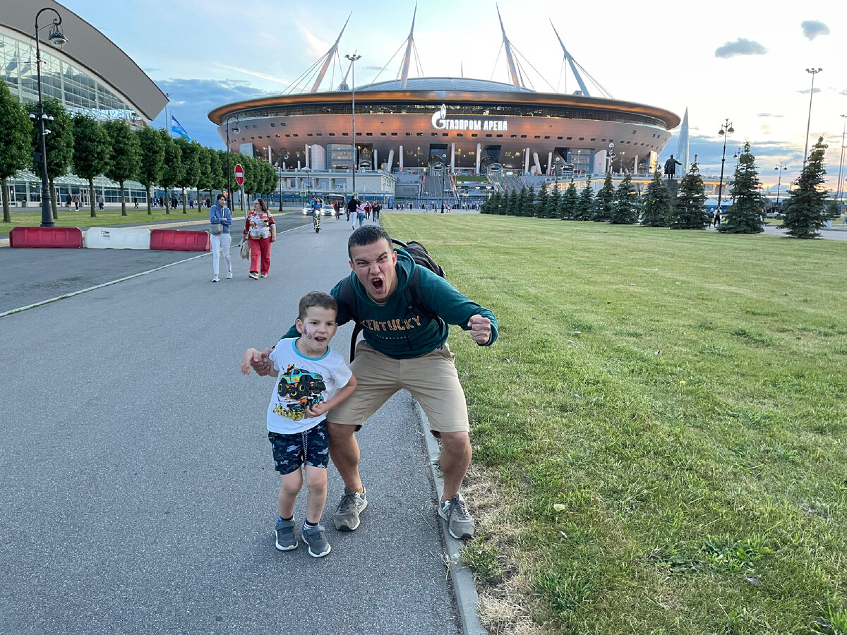 Отпикиваем билеты, проходим тщательный досмотр и оказываемся на территории стадиона "Газпром Арена".