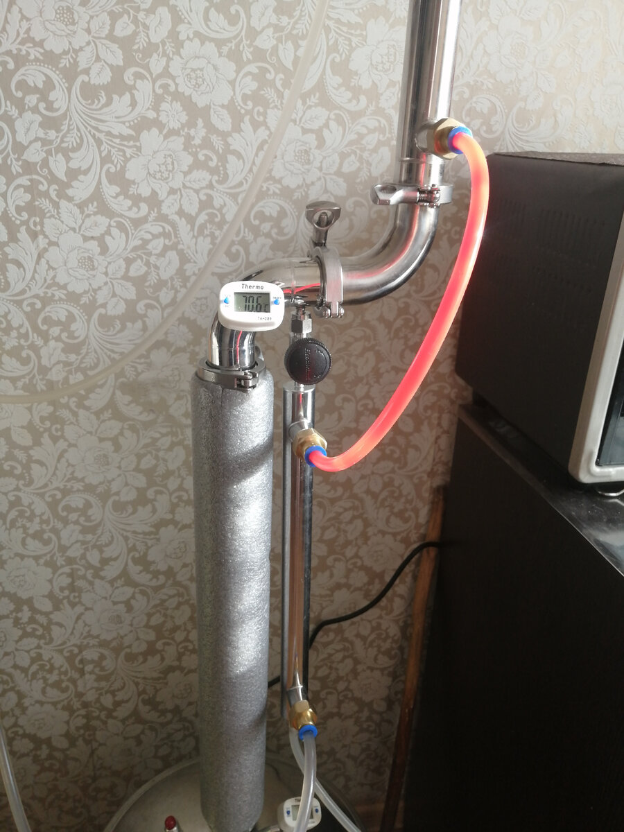 Всем привет. С вами Перегарыч. Часто, на самогонных форумах, в статьях и просто на устах самогонщиков звучит фраза : "колонна работает на себя". На самом деле, фраза действительно актуальна, точнее актуально то, что она подразумевает, простите за каламбур. Так что же такое работа колонны "на себя"? Зачем вообще это нужно? Как правильно использовать данный режим? Давайте разбираться: Режим "на себя" используется при втором, дробном перегоне в режиме укрепления. При чём не важно, готовим мы сахарный самогон, зерновой, фруктовый или ещё какой-нибудь. Суть процесса заключается в том, что бы "погонять" колонну без отбора. Поднимающиеся при нагреве спиртовые пары, проходят через насадочную часть к дефлегматору. И охлаждаясь, в виде флегмы устремляются обратно в куб. Падая, контактируют с восходящими парами и цикл непрерывно повторяется. При этом отбора не происходит, КОЛОННА РАБОТАЕТ НА СЕБЯ. С этим разобрались. В результате работы колонны "на себя", происходит некий процес