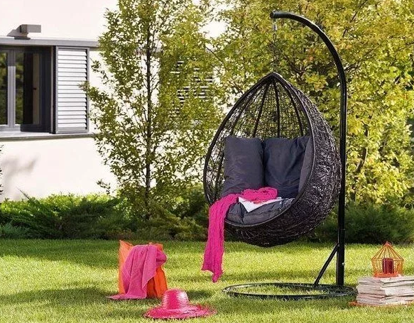 За последние несколько лет мы научились проводить свой отпуск не на загородных пляжах, а на родных дачных участках! И раз ничего не изменить, то пусть такие каникулы будут комфортными! С этим прекрасно справляется садовая мебель: шезлонги, кресла-качалки и, конечно, хит летнего отдыха - подвесное кресло! Еще несколько лет назад было модно иметь на даче садовые качели с навесом и подстаканниками - это было обязательным атрибутом загородного отдыха! Сейчас особой популярностью пользуются кресла-коконы или кресла-гнезда, в котором можно не только приятно провести время, но и полноценно расслабиться и отдохнуть! Настоящий релакс! В чем различия? Подвесные кресла имеют одинаковую конструкцию: металлическая стойка и чаша из искусственного ротанга. Не пугайтесь использования синтетического материала, так как он прекрасно выдерживает перепады температуры и не портится от воздействия влаги и ультрафиолета! Все отличия заключаются лишь: Большим плюсом интернет-шоппинга