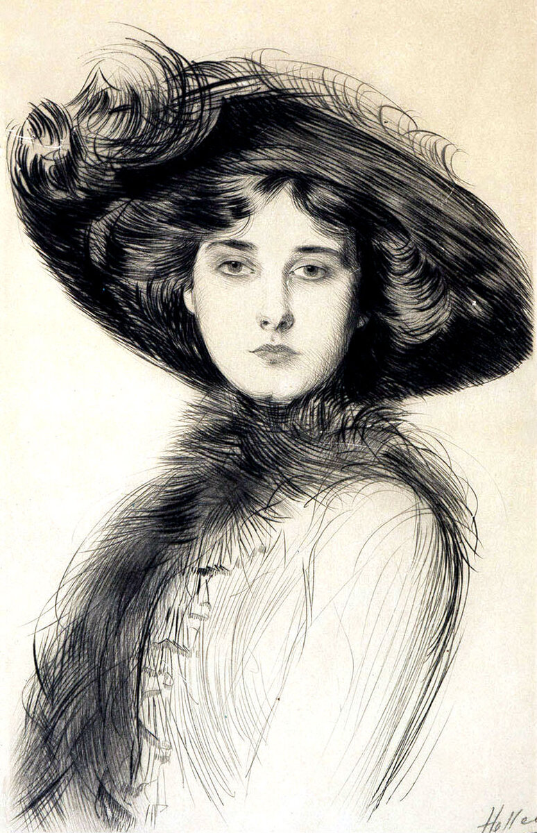 Поль Сезар Эллё (Paul César Helleu; 17 декабря 1859 — 23 марта 1927 гг.) — известный французский живописец и гравер конца XIX — начала ХХ веков. Приобрел славу талантливого художника, в первую очередь, благодаря утонченным портретам красивых женщин своей эпохи. Он искусно владел техникой сухой иглы и создал более 1500 прекрасных гравюр, а также написал множество картин маслом, пастелью и акварельными красками. На творчество мастера сильное влияние оказали коллеги-импрессионисты. В Эрмитаже (в здании Главного штаба) можно увидеть работы этого замечательного мастера.