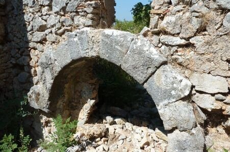 Через 2,5 км вы доберетесь до села Эликесик. Есть несколько домов, где можно оставить машину и пройти последние 100 м до римской цистерны с замечательными колоннами. Высота 400 метров, растительность густая, но вид на полуостров Аналия на востоке, пляжи на западе и горы на севере прекрасен. В хорошую погоду вы можете увидеть Газипашу на востоке и Манавгат на западе. Рядом с новым домом безымянная гравийная дорога резко поворачивает вправо и вверх, и через 2 км вы оказываетесь у подножия горы и достигаете руин бывшего города Гамаксия. Не бойтесь, много кустов закрывает путь, поэтому лучше надевайте длинные брюки и походную обувь.