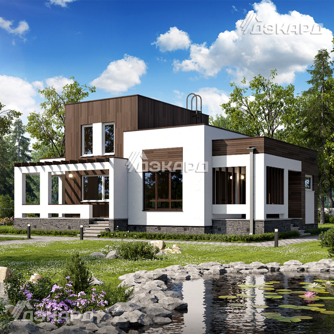 Проект «Арбон-164» — это свобода загородной жизни, воплощенная в современных архитектурных решениях. Изысканный модерн делает его фасады оригинальными с точки зрения визуального восприятия. Такие строения пока редко встречаются в наших коттеджных поселках. Стильный загородный дом для креативных людей, ценящих комфорт и неординарность. Параметры дома: Посмотреть проект на сайте Габариты: 10,5 м х 14,0 м Общая площадь (с террасой): 162,8 м² Высота потолков 1-го этаж: 2,75 м Высота потолков 2-го этажа: 3,0 м / 2,5 м Полноценный второй этаж Строим загородные дома по технологии 3D каркас Что такое технология 3D каркас? Наши контакты Телефон: +7 (495) 363-06-08 Эл. почта: info@dekardkarkas.ru Наш сайт: https://dekardkarkas.ru/ С Уважением, строительная компания ДЭКАРД