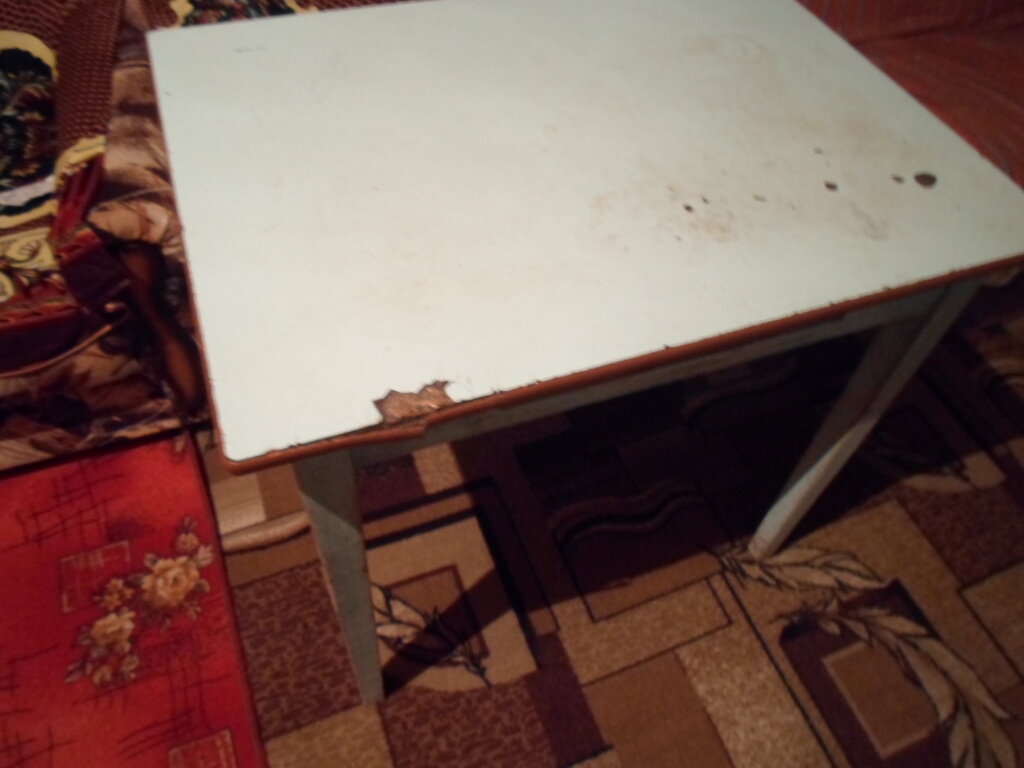 Всем доброго времени суток! Вот такой стол мне достался, очень старый и с "совсем "убитой" столешницей. Выбрасывать и в мыслях не было, а вот отремонтировать и пользоваться сразу решила. Ножки у стола достаточно прочные и в хорошем состоянии, что нельзя сказать о самой столешнице. Поэтому сняла столешницу, зачистила наждачной бумагой ножки, все крепления хорошенько протянула для надежности и покрасила в сиреневый цвет. Доски на столешницу пришлось купить, они именно такого размера и продавались, как на фото. Их я покрасила пропиткой для дерева (цвет красное дерево). Такая пропитка не пахнет и быстро сохнет, так что даже в доме можно делать. Всего понадобилось три таких доски. Закрепили доски саморезами для большей прочности и надежности, чтобы не боятся пользоваться столом. Все крепко и надежно. Вот такой стол получился, осталось застелить чем-то симпатичным и пользоваться по назначению. Вот такая ст
