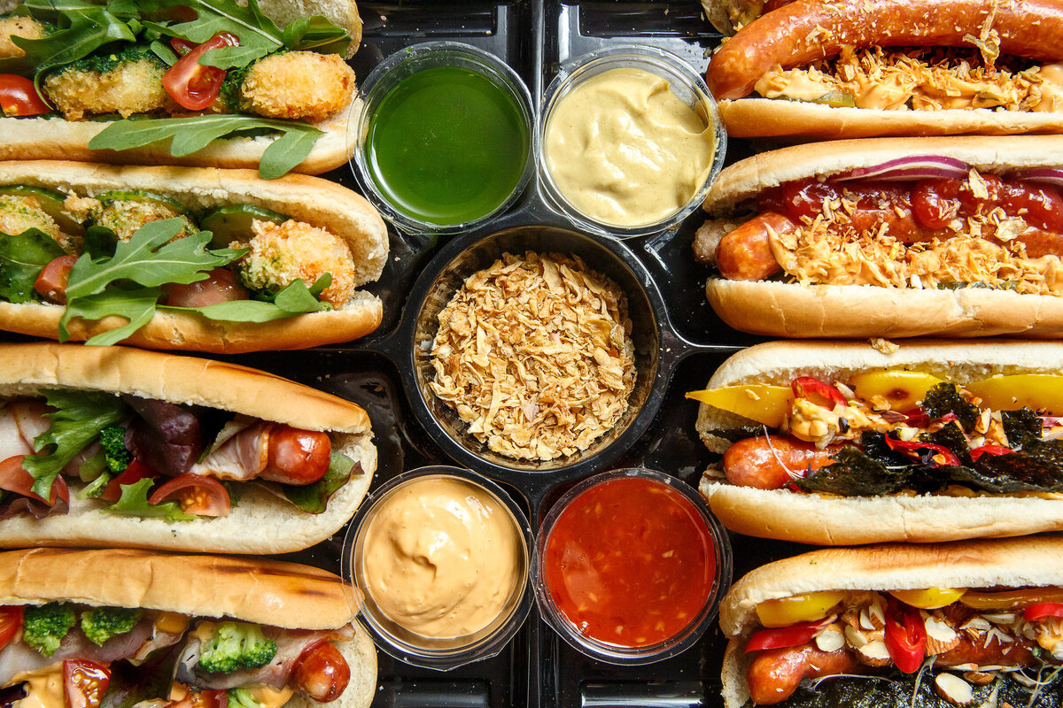 Начнем с самых простых основ того, как приготовить хот-дог дома. Тебе понадобится: 2 булочки, 2 сосиски, 1 помидор, 100 г сыра, кетчуп, майонез, зеленый лук. Приготовление: Разрежь булочки и сделай небольшое углубление для начинки. Смажь их кетчупом и майонезом, выложи по сосиске, и добавь кружочки помидоров, лук и тертый сыр. Отправь хот-доги в духовку на 10 минут при 220 градусах. Быстрый домашний хот-дог? Самый быстрый рецепт на каждый день. Тебе понадобится: 4 булочки, 4 сосиски, 1 помидор, 1 маринованный огурец, 1 луковица, 50 г сыра, зелень, по 8 ст.л. кетчупа и майонеза, 4 ч.л. горчицы. Приготовление: Надрежь булочки и смажь горчицей, кетчупом и майонезом. Добавь рубленую зелень и мелко нарезанные соломкой овощи. Сверху выложи сосиску и присыпь тертым сыром – и хот-дог готов. Хот-дог в микроволновке: Тебе понадобится: 5 булочек, 5 сосисок, 100 г редиса, 200 г огурцов, зелень, кетчуп, майонез, горчица. Приготовление: Надрежь булочки и смажь их внутри соусами. Добавь мелко нареза