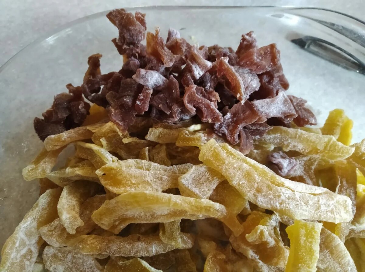 Здравствуйте, дорогие читатели. Как я уже упоминал, кабачки не шутя атакуют нашу маленькую семью. Конечно кормление этим богатством скотного двора значительно уменьшает расходы на покупной размол и комбикорма, однако и для себя хочется что-то сделать из этого изобилия. Читая множество рецептов на тему готовки и кабачков я решила попробовать сделать цукаты - довольно неожиданное применение для этих овощей, на мой взгляд. Самое интересное что кабачки способны принять себе вкус и даже цвет любой добавки, поэтому разнообразие готового продукта может ограничится только фантазией и наличием дополнительных вкусовых ингредиентов. Добавлять, насколько я уяснила, можно любые фрукты и ягоды, получая сладкий десерт на любой вкус. Технология изготовления очень проста, хотя и занимает в общем итоге довольно много времени - у меня ушло на первые две порции целых 4 дня, но результат на мой взгляд, превзошел самые смелые ожидания. Нам понадобится кабачок-переросток, так чтобы в процессе приготовления