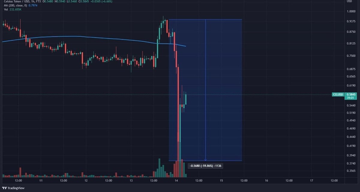Celsius объявила о банкротстве по главе 11, чтобы провести реструктуризацию финансов У Celsius около 100 000 вкладчиков, а на пике платформа управляла активами на $20 млрд. Собственных активов платформы от $1-$10 млрд. Платформа продолжает работать в ожидании реструктуризации. Токен CEL отметил банкротство падением на 60% в моменте.