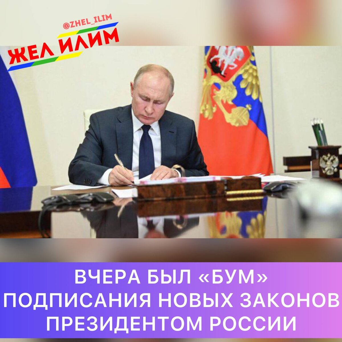 Вчера был какой то «законный бум» у нашего президента. Владимир Путин, подписал аж несколько рядов законов. Кратенько, мы насчитали 27 штук. Все законы сюда не поместятся, по этому тут отобразим только важные тезисы, а полный список будет у нас в ВК 👉 жми сюда 👈 и читай. 🔻Законы об ужесточении наказания за опасное вождение, штрафы до 250-300 тыс руб и до 1-2 лет колонии… 🔻Вторичные ресурсы нельзя захоранивать; 🔻Статус ветерана гражданским лицам, участвующим в спецоперации на Украине; 🔻Дети-сироты и оставшихся без попечения родителей зачисляются на полное гособеспечение до завершения учебы в школе; 🔻С 1 января 2023 года вводится единый налоговый счет, позволяющий гражданам и организациям уплачивать все налоги одним платежом; 🔻Ужесточается до 15 лет тюрьмы за пытки, совершенные в том числе представителями власти; 🔻Штрафы до 200 тысяч рублей с возможностью конфискации автотранспорта вводятся за сброс мусора с транспортных средств; 🔻Закон о снятии бюрократической нагрузки с учите