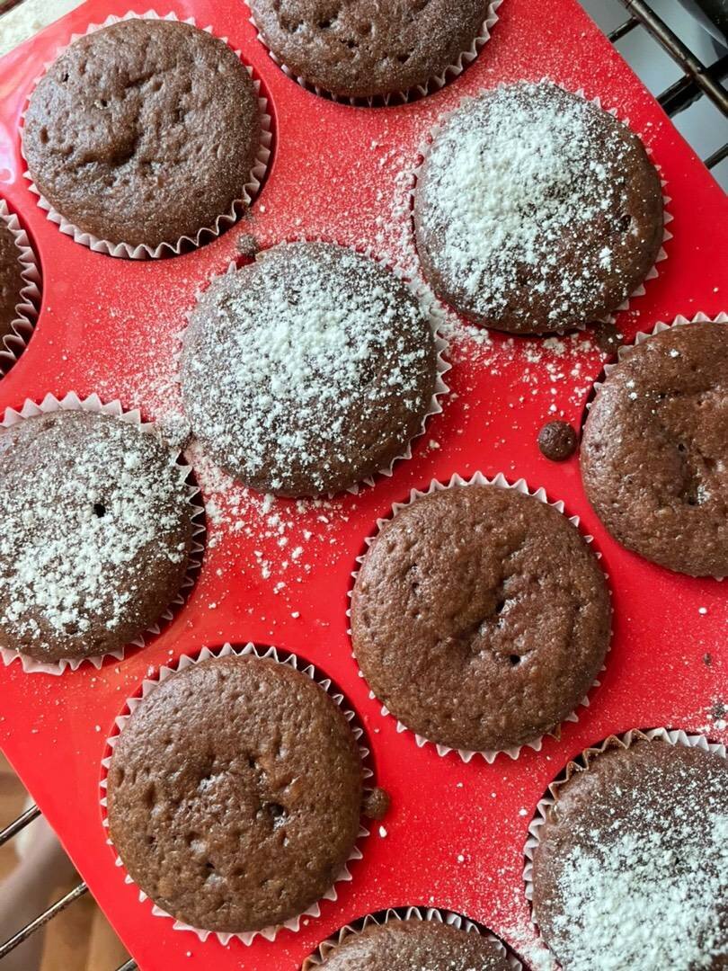 Сама придумала, методом проб и ошибок получилось идеальное сочетание. ☺️ Ингредиенты: яйца, сахара, муки, кефира, какао, растительного масла, разрыхлителя, маленьких нектарина Способ приготовления: Выбить яйца в миску, насыпать сахар и взбить миксером. Добавить кефир, какао и муку и разрыхлитель, всё тщательно перемешать и влить масло. Перемешать с помощью миксера до консистенции мусса. На дно силиконовой формочки выложить дольше нектаринов и заполнить тестом на 3/4 формы. В разогретую до 180 градусов духовку поставить выпекаться на 20-25 минут.
