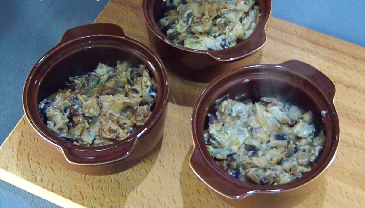 Сегодня решил удивить своих девочек нашим, любимым, семейным жульеном. В нем нет мяса. На вкус очень нежный и сливочный, поэтому в моей семье его называют "дамский жульен". Немного изменив рецепт классического жульена, получаете совсем другое блюдо. Если и вам интересно, как приготовить жульен с баклажаном и грибами, приглашаю к себе на кухню, где покажу и расскажу, как это сделать. ВИДЕО РЕЦЕПТ: ПОШАГОВОЕ ПРИГОТОВЛЕНИЕ С ФОТО: Шампиньоны промываю под проточной водой, обсушиваю и нарезаю пластинами. Баклажан нарезаю брусочками. Я не удаляю шкурку с баклажанов, но если вас это смущает, можете удалить. Мелко нарезаю лук. Тру сыр на крупной терке. Все составляющие ингредиенты нарезаны. Можно приступить к готовке. В сковороду выкладываю кусочек сливочного масла и растапливаю. Выкладываю лук и помешивая обжариваю до готовности. Добавляю к луку грибы и помешивая, готовлю до испарения жидкости, которую они пустят. На другой сковороде, в это же время, растапливаю еще кусочек сливочного масла и