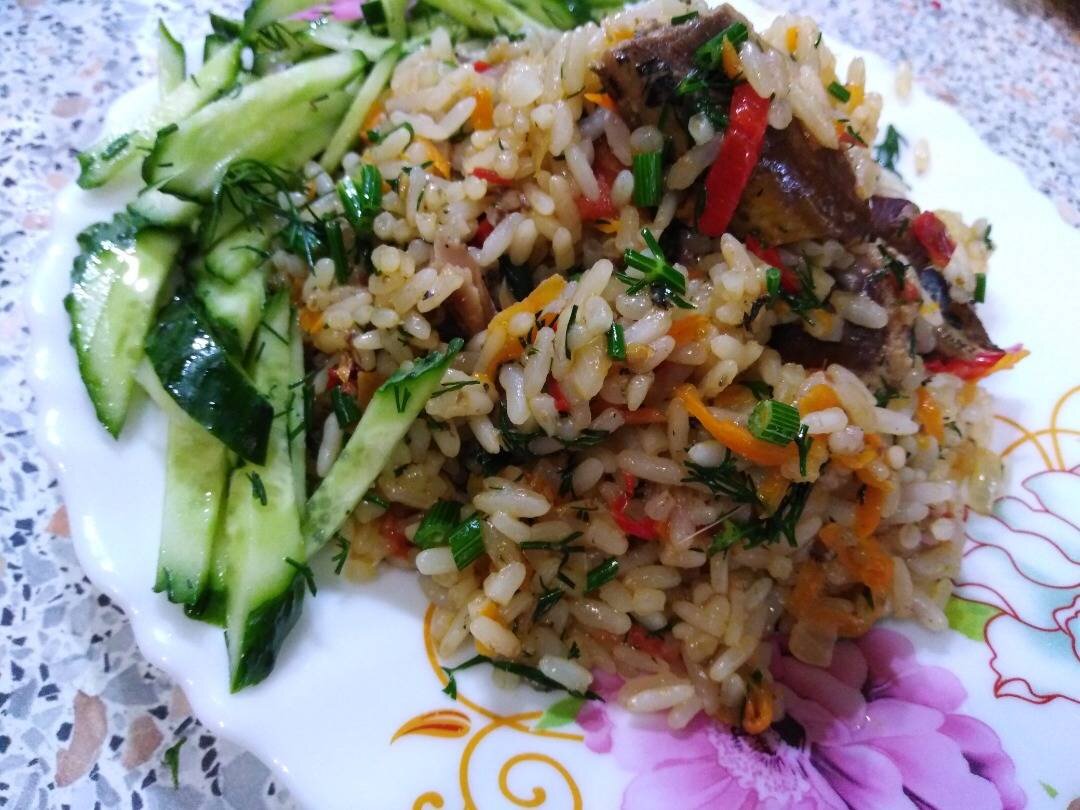 #четверг Ингредиенты: сардины, рис, морковь, репчатый лук, перец болгарский красный, помидоры, соль , вода, растительное масло для жарки , укроп Способ приготовления: Лук обжарить до прозрачности, соединить с морковью. Жарить до изменения ее цвета. Всыпать болгарский перец. Жарить 5 минут. Добавить помидор, жарить 5 минут. Рис заранее промыть и замочить в воде на 1 час. Воду слить. Всыпать рис к овощам. Жарить постоянно помешивая в течение 10 минут, чтобы рис пропитался ароматом овощей. С консервов слить жидкость, добавить к рису. Залить двумя стаканами воды, посолить. Под крышкой готовить на малом огне 20-25 минут. В конце заправить зеленью. Приятного аппетита!!!