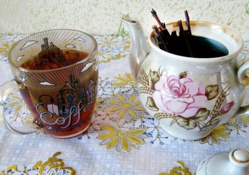 Чай из собственного сада. Собираем урожай с голых веток Чай, конечно, громко сказано, но что-то полезное и вкусное с голых веток можно собрать даже в эту пору. Многих из вас в детстве поили отваром малиовых веточек во время болезни. Но не только малину можно приспособить для этого. Расскажу какие веточки можно нарезать на чай и какими вкусовыми качествами они обладают. Малина Желательно использовать не одеревеневшие побеги, можно даже с листочками, они ещё не осыпались. Если вы проводите осеннюю обрезку малины, то самое время сделать заготовку на чай.. Нарезают веточки длиною 5 - 7 см. На 1л воды возьмите 10 шт таких веточек и кипятите около 15 минут на медленном огне. В тёплом месте оставьте до полного охлаждения. Отвар будет тёмного цвета с выраженным ароматом малины. Такой напиток усиливает потоотделение, именно по этой причине, он так полезен при высокой температуре. Шиповник Не только ягоды шиповника годятся для приготовления напитков. Используют как молодые побеги, так