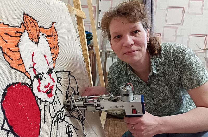 Регулярно она заходила на сайты хенд-мейда и однажды наткнулась на мастера, который ткал ковры тафтинговым пистолетом. Это «оружие» делает стежки пучками пряжи (английское слово «tuft» переводится на русский как «пучок»), в итоге на основе ковра получается мягкий пушистый ворс. Такой же инструмент через интернет приобрела и Елена.