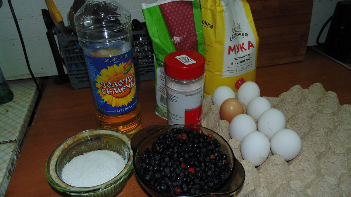 Думали мы, думали, что нам с остатками черники сделать. И решили своять почти торт по технологии быстрого кекса. Мы довольно часто печем шарлотки к чаю. Делаем их в классическом варианте с яблоками. Добавляем в них любые фрукты и ягоды, которые есть в наличии. Можно использовать груши, вишню, сливы. А можно сделать вообще без наполнителя, разрезать получившийся бисквит на коржи и смазать любым кремом, украсить и подать к праздничному столу в виде торта или пирожных. Зная основные принципы, можно экспериментировать абсолютно в любом направлении и с любым наполнением. Я, например, слышала, что иногда подобный кекс пекут с капустой. Сама не пробовала... Но, почему, нет? Итак, нам понадобится: 1. Яйца куриные - 4 штуки. 2. Сахарный песок - 1 стакан (250гр) 3. Мука - 1 стакан (250гр) 4. Соль - 1/3 чайной ложки. 5. Сливочное или растительное масло для смазывания противня. Опционально, то есть "по желанию": 1. Любые ягоды или фрукты. Я взяла 0.5л свежей черники. Яблоки и груши нужно предварит