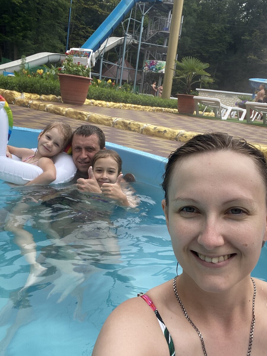Вчера побывали в аквапарке «Водолей», который находится на территории Парка Победы. (г. Ставрополь). Как всегда, погода устроила нам испытание, в назначенный день поездки прогноз резко изменился (как это обычно бывает) и вместо солнышка шёл моросящий дождик. Было прохладно, но все члены семьи не попали под влияние моего плохого настроения и мы всё-таки выдвинулись в сторону аквапарка. Я думала, что мы одни будем купаться в дождь и что сотрудники аквапарка покрутят пальцем у виска! Каково было мое удивление, когда я увидела людей в бассейнах! Вода в данном аквапарке с подогревом и это было очень кстати! После того как мы погрузились в царство Нептуна, дождь перестал быть для нас проблемой и мы очень хорошо провели время! Сам парк Победы заслуживает отдельного посещения! В нем есть большое разнообразие аттракционов как для детей, так и для взрослых. Кстати, четверг там «социальный день», цены на 50-100 рублей дешевле!