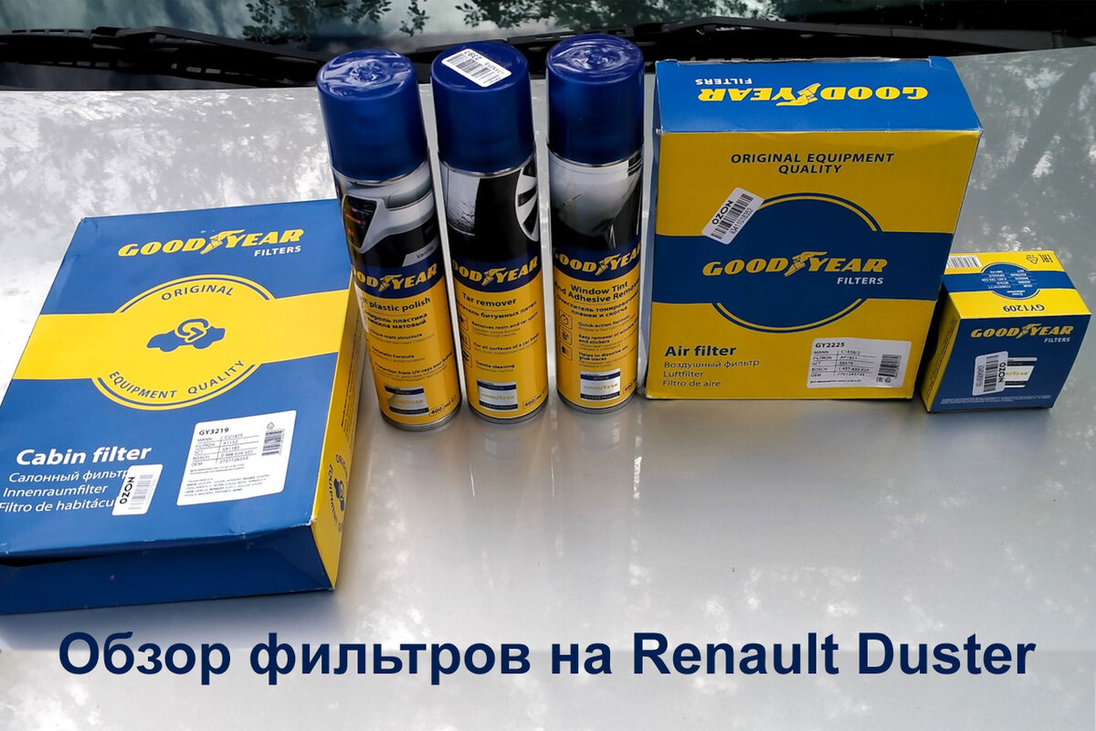 Из-за нестабильности на современном рынке некоторые водители стали закупать расходники «в запас». Автор Drive2 zhiv1973 тоже так делает, он заказал на свой Renault Duster комплект фильтров: салонный, воздушный и масляный. Наткнулся на Drive2 на блог Goodyear. Узнал, что на их сайте есть отличный онлайн каталог для подбора фильтров по марки модели автомобиля. Нашел там нужные позиции, заказал через OZON и спустя несколько дней забрал: Также заказал немного автохимии: Рассмотрел масляный фильтр. Упаковано все хорошо, сама банка пропаянная, ровные швы, резьба ровная, без заусенцев, укладка шторы гармошкой (достаточно плотная), нигде нет косяков, надпись читаемая, в целом стандартный фильтр под масло. Качество и конструкция полностью соответствует оригинальному. Воздушный фильтр прислали в упаковке, на которой есть вся необходимая информация, включая наименование фильтров аналогов других брендов. На край самого фильтра маркировка. Отмечу качество расходника, плотную посадку и герметичное с