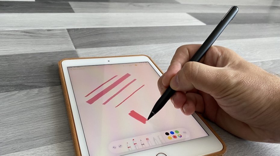 В рисовании и письме стоит учитывать, что карандаш не имеет датчика давления, поэтому от усиленного нажатия толщина линии не меняется. Но при этом наклон он понимает отлично и в этом смысле всё работает как надо. Кнопка при работе никак не задействуется — похоже, что она служит лишь для пробуждения стилуса.