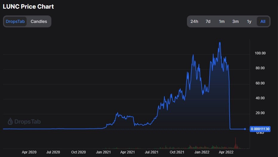 Стратегия и риск менеджмент при инвестициях в криптовалюте. Стратегия и риск-менеджмент в криптовалюте очень важны❗️. Ведь если не будет первого или второго, риск слить свой депозит слишком велик. Второго шанса уже может не быть( Вот пример самого нашумевшего скама этого года! Terra Luna Classic (ранее LUNA). смотрите на график. Конечно сразу выбирать честные и достойные проекты новичку трудно🧐. Научишься оценивать когда потеряешь, или нужно более фундоментально подходить к инвестированию актива! (но риски все-же есть, это крипта🤔)