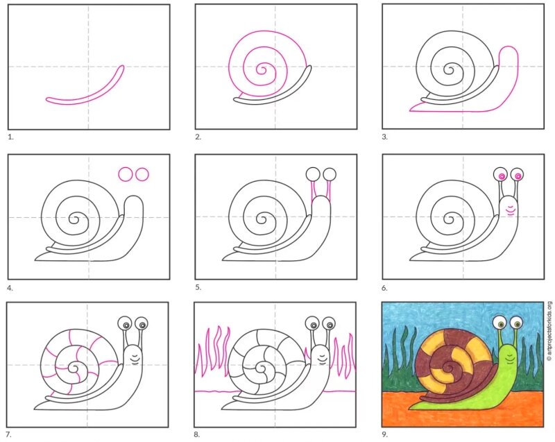 12 вариантов рисования улитки ребенку