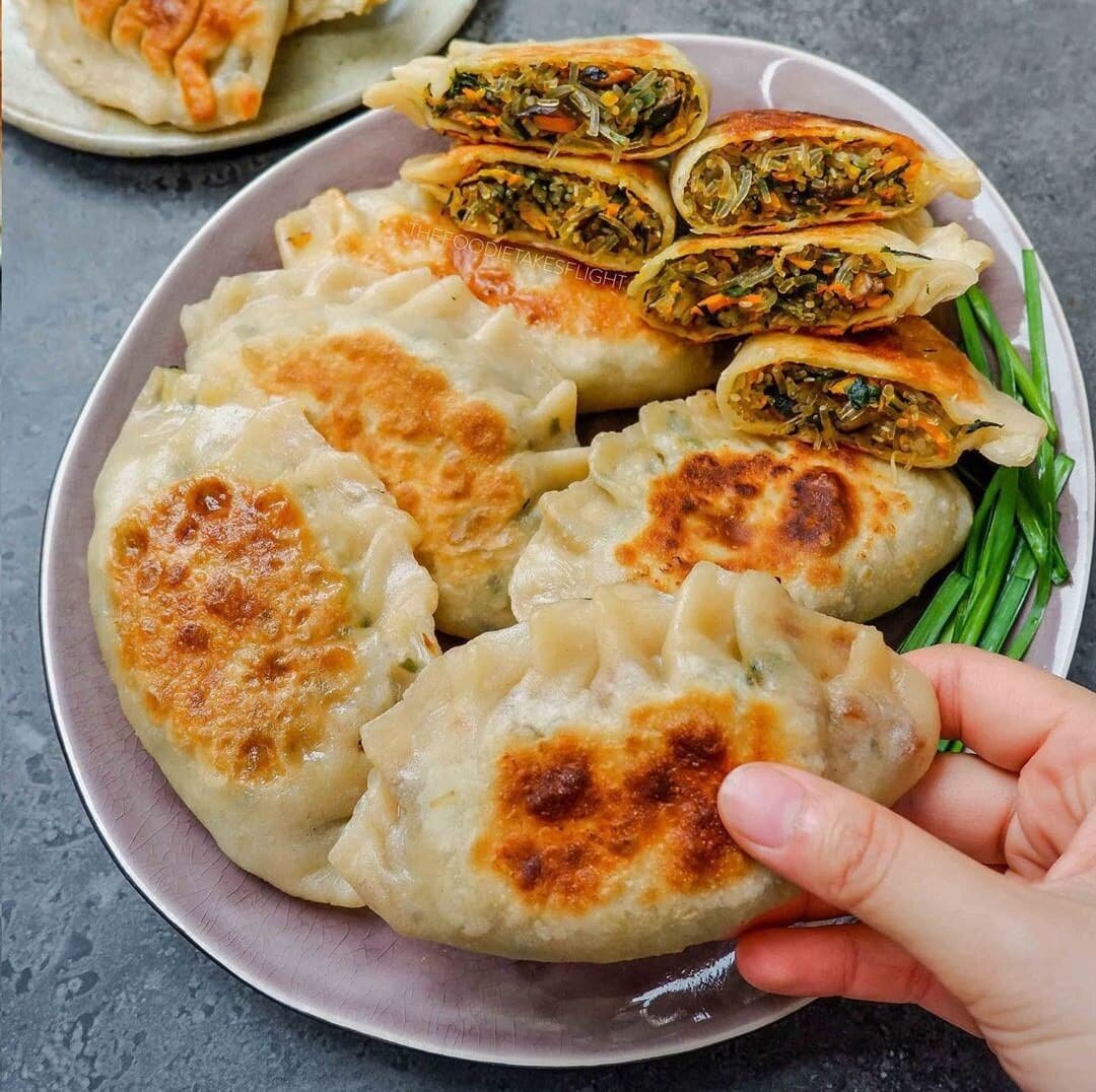 🌿ПИРОЖКИ С ЗЕЛЕНЫМ ЛУКОМ😍 ⠀ Сложность⭐️⭐️ ⏰ 45 минут ⠀ #veg_обед ⠀ ✅Ингредиенты для теста: ▪️¾ чашки* + 1 ст.л. теплой воды ▪️2 чашки* муки ▪️1 ч.л. масла ▪️½ ч.л. соли ⠀ ✅Ингредиенты для начинки: ▪️100 гр нарезанного зеленого лука ▪️1 средняя измельченная морковь ▪️150 гр нарезанных грибов шиитаке (либо других грибов) ▪️1-2 ст.л. соевого соуса ▪️1 ст.л. кунжута *1 чашка=240 мл ⠀ 👩🍳Как готовить: ▶️Смешайте все ингредиенты для теста и замесите тесто. Сформируйте тесто в шар, затем поместите в миску. Накройте влажным полотенцем и оставьте на 30 мин. ▶️Разогрейте сковороду с 1 ст.л. масла. Добавьте лук, морковь и грибы. Готовьте на среднем огне 4-5 мин. Влейте соевый соус, соль, семена кунжута и масло. Перемешайте деревянной ложкой и готовьте еще 2-3 мин. на среднем огне. ▶️Нарежьте тесто на 12 частей. Каждый кусок раскатайте в небольшую лепешку. ▶️В каждую лепешку выложите начинку. Заверните лепешку. ▶️Обжарьте каждый пирожок до хрустящей корочки, либо запеките в духовке. Измени с