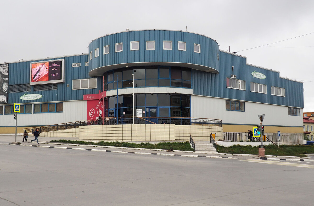 С виду анадырский супермаркет представляет собой ничем не примечательное здание. Если бы не видеоэкран слева от входа, на котором сменяют друг друга изображения различных товаров с подписями их цен, ни за что не догадаешься, что внутри расположен единственный на весь город [да и вообще на тысячи километров вокруг] супермаркет. Есть здесь, конечно, еще несколько небольших магазинчиков в формате «у дома», но ассортимент там в разы меньше, а качество товаров [по слухам], как минимум, не выше, так что многие анадырцы предпочитают закупаться именно здесь.