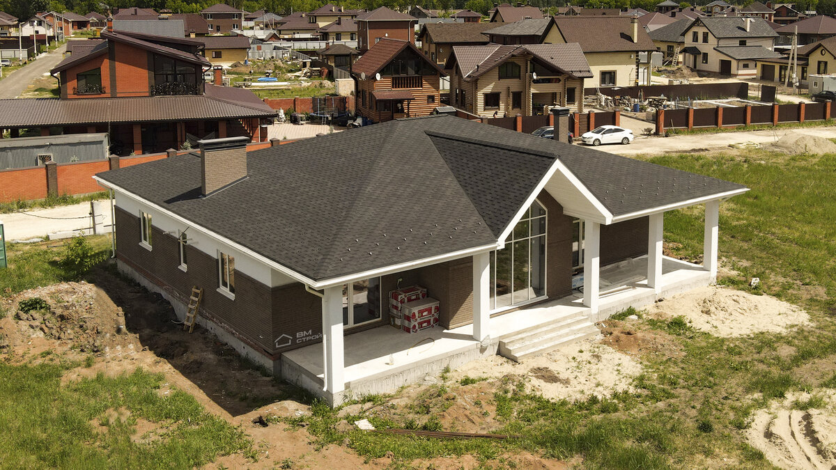 Одноэтажный дом по проекту Аляска площадью 260м². Четыре спальные комнаты, два санузла, кухня-столовая 30м² с выходом на длинную крытую террасу. ⚒ Конструктив: Наружная стена сделана из двух типов облицовки: 1) Керамический блок - 440 мм, облицовочный кирпич 0,7НФ - 85мм.; 2) Керамический блок - 440 мм, базальтовый утеплитель-50 мм, штукатурка - 20мм.; ⚒ Фундамент свайно-ростверковый, изготовленный из бетона марки М250 заводского изготовления. ⚒ Кровля выполнена из деревянного каркаса, покрытие - мягкая черепица. 💬 Хотите узнать стоимость дома - пишите "+" в комментарии ⠀ Интересуют подробности? 📱 Звоните: 8(800) 600-00-13 💬 Пишите 🌐 VM-STROY.PRO ⠀#ВМстрой #ВММ260м2 #дом #дом_под_ключ #домов #под_ключ #о_строительстве #построить_дом #из_газобетона #из_кирпича